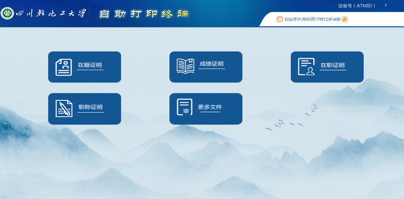 自助打印终端目前支持的证明材料有:在籍研究生成绩单(带部门公章)、研究生在籍证明(带部门公章)。
